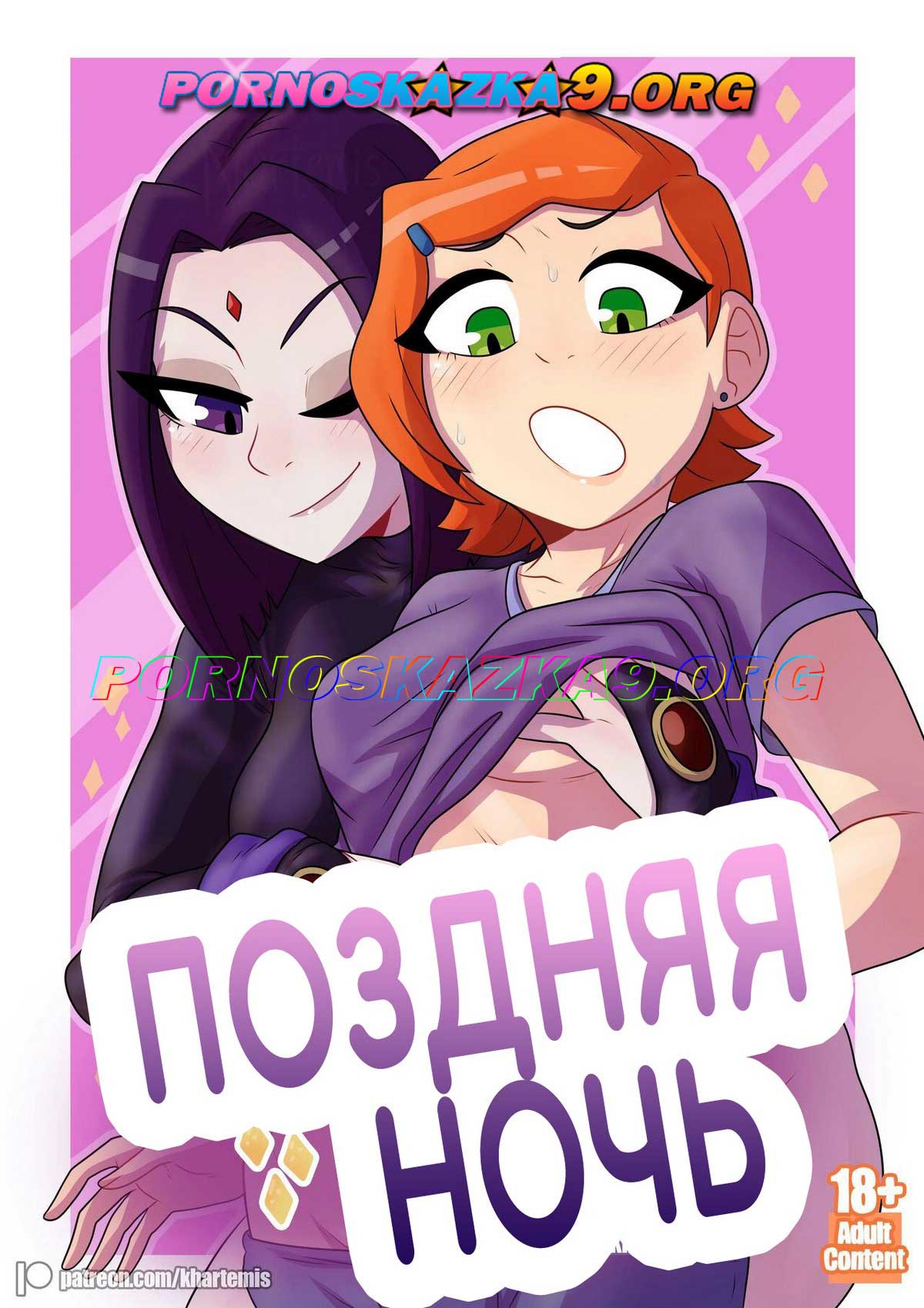 Порно комикс «Поздняя ночь.» Поздней ночью Рейвен разбудила Гвен, ради того, чтобы она отлизала её сладкую пиздёнку, но что-то пошло...